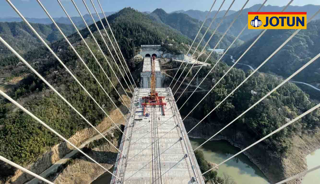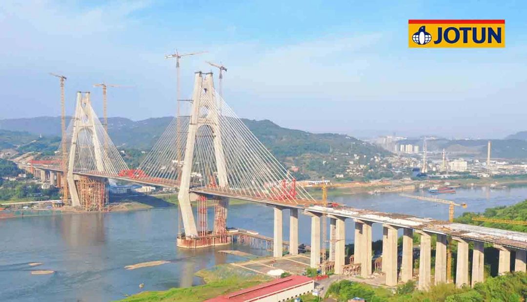 宜賓臨港長江公鐵大橋位于四川省宜賓市,是國內(nèi)首座高鐵與公路平層布置斜拉橋、世界最大寬度公鐵兩用斜拉橋、世界最大跨度公鐵兩用鋼箱梁斜拉橋。2023年12月大橋正式通車。大橋采用了有優(yōu)異防腐性能和極佳柔韌性的佐敦Barrier 85環(huán)氧富鋅底漆產(chǎn)品。